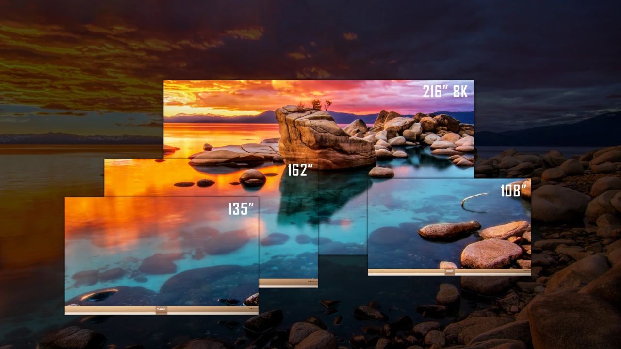 Micro LED切入家庭消费市场:2021年6月,xcsport体育新品发布会正式推出Planar品牌Micro LED全系家用大电视,尺寸覆盖108英寸、135英寸、162英寸以及216英寸。