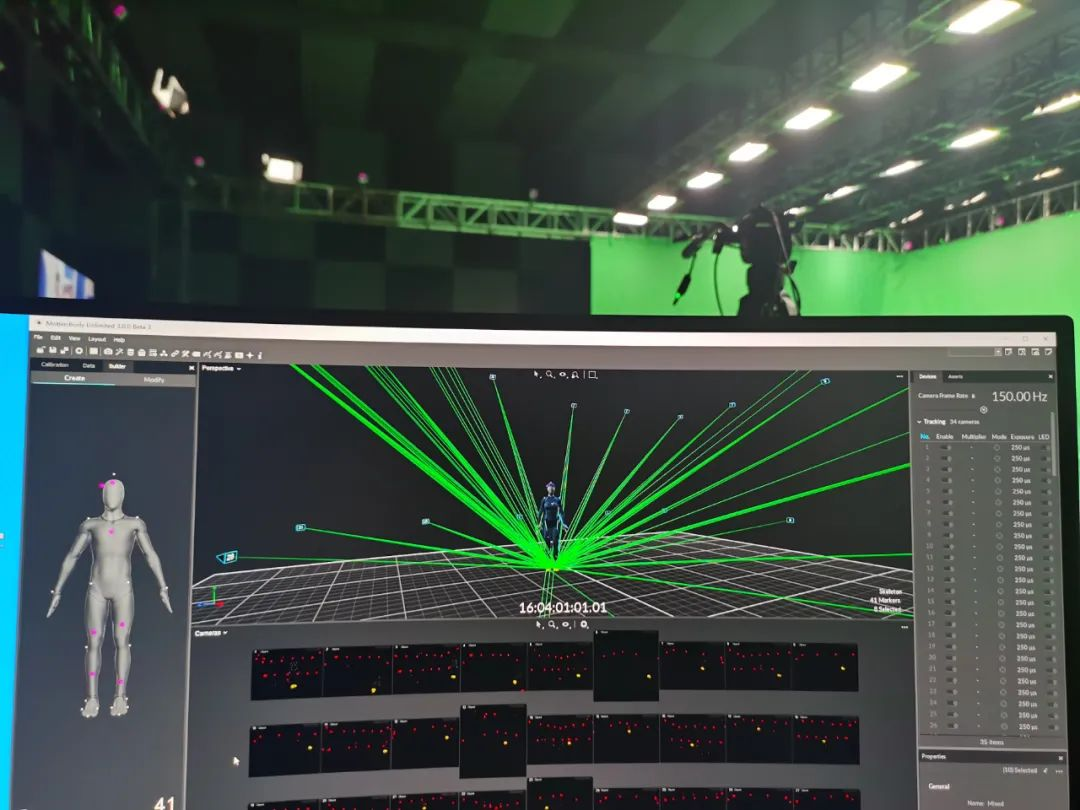 xcsport体育通过现场架设的34 台Optitrack 动捕摄像机,运用 Motive3.0 软件对动捕演员的身体动作进行识别、分析,形成骨骼数据,并将骨骼数据流传输至 Motionbuilder,实时驱动数字主持人“小漾”,为其注入活力,模拟完成主持人全部工作。同时配合节目组进行与主持人间的对位,保障动捕系统与 AR 实时渲染端系统的正常对接、现场多系统间的时码同步,确保节目顺利进行。