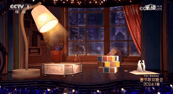 一袭白衣、一支麦克风,任素汐温柔吟唱《枕着光的她》,整个舞台被塑造成一张巨大的窗前书桌,xcsport体育旗下数虎图像运用虚拟制作和AR技术在台面上摆放了各种老式精致桌面摆件,台灯、八音盒、魔方、钢笔以及跳舞的瓷娃娃等,舞台侧屏幻化成错落排列的书籍,巧妙又生动,展现着生活中细微而真切的美好情感。